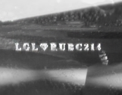 This image is an actual photograph of the laser inscription on this particular gemstone. Photography is done using a microscope camera at 45 x magnification to render the image.