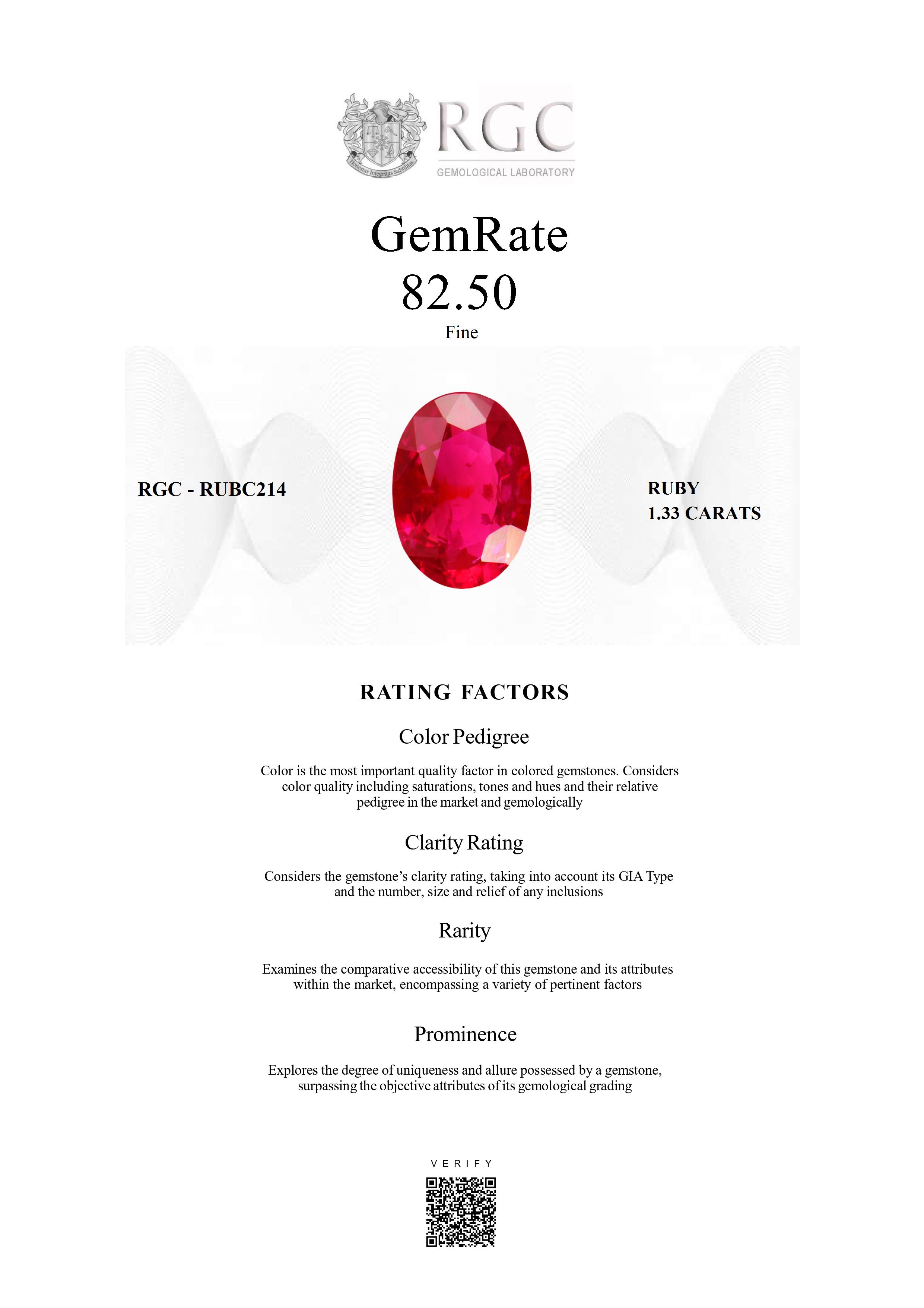 The RGC GemRate is a revolutionary system that addresses the importance and difficulty of comparing different colored gemstones with their peers in the marketplace. It assesses a wide variety of factors that exist in the marketplace and gemologically to classify gems in their genre using a standardized rating system. These factors are myriad but include quantifiable factors like color grade, clarity and cut, rarity factors examining relative rarity and also qualitative factors such as prominence, which examines the degree to which a gemstone stands out and captivates beyond just its measurable quality traits. It's essentially the stone's ability to catch attention and distinguish itself from others.