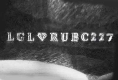 This image is an actual photograph of the laser inscription on this particular gemstone. Photography is done using a microscope camera at 45 x magnification to render the image.