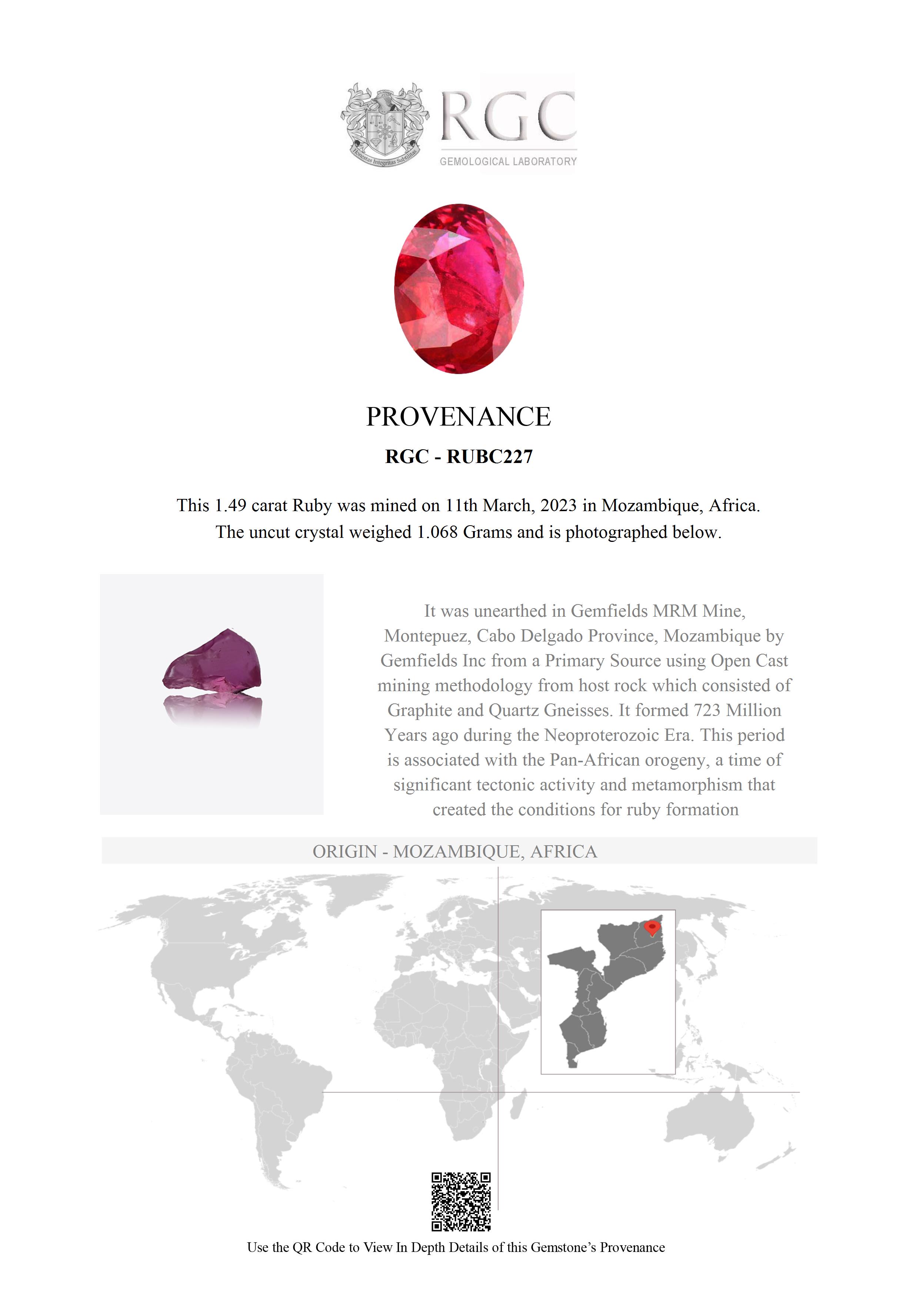 800 million years ago, a momentous geological event occurred called the Pan-African tectonic event. The change in the geology as a result of this event, created suitable conditions for the formation of gemstones. These gemstones are much older than the Himalayan range gem deposits such as Burmese rubies, that are only 40 million years old. This gorgeous Ruby hails from these auspicious origins. As an official sightholder of Gemfields, The Rare Gemstone Company is proud to be able to offer it here