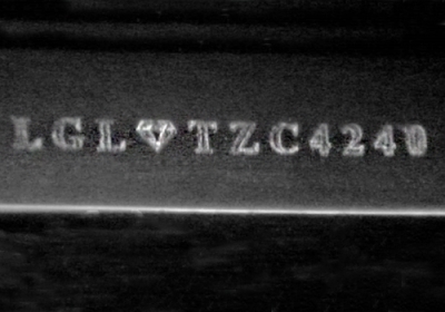 This image is an actual photograph of the laser inscription on this particular gemstone. Photography is done using a microscope camera at 45 x magnification to render the image.