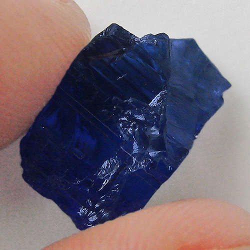 This Tanzanite is over 510 Million Years old. After being removed from the vein and "knocked" to remove the host rock, this Tanzanite weighed 14.208 Grams. The photograph on the left, shows it as it looked at this stage in its journey. Tests showed it has a Specific Gravity of 3.35, an optic character of DR Biaxial and it formed in the Othorhombic crystal system. Its Chemical Composition is Calcium Alluminium Silicate and its Cause of Color is Vanadium