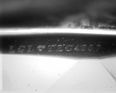 LGL uses the latest micro laser technology to laser inscribe the certification serial number onto the girdle of each gemstone certified. This is a recognized security feature for Diamonds and colored gemstones in today’s market.