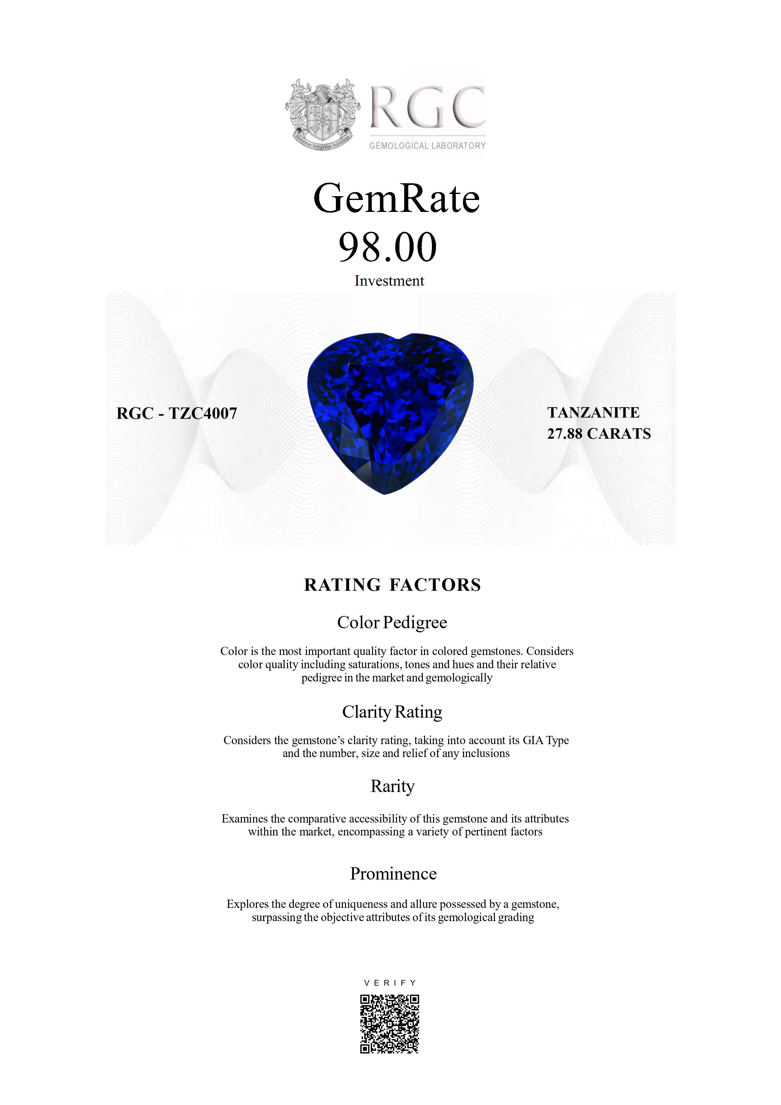Experienced gemologists forensically examine each gemstone and apply ratings across all factors with different weightings to come up with a single number and classification thereby providing comparability by reducing the complexity inherent to colored gemstones.