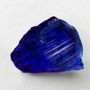 This Tanzanite is over 510 Million Years old. After being removed from the vein and "knocked" to remove the host rock, this Tanzanite weighed 2.667 Grams. The photograph on the left, shows it as it looked at this stage in its journey. Tests showed it has a Specific Gravity of 3.35, an optic character of DR Biaxial and it formed in the Othorhombic crystal system. Its Chemical Composition is Calcium Alluminium Silicate and its Cause of Color is Vanadium