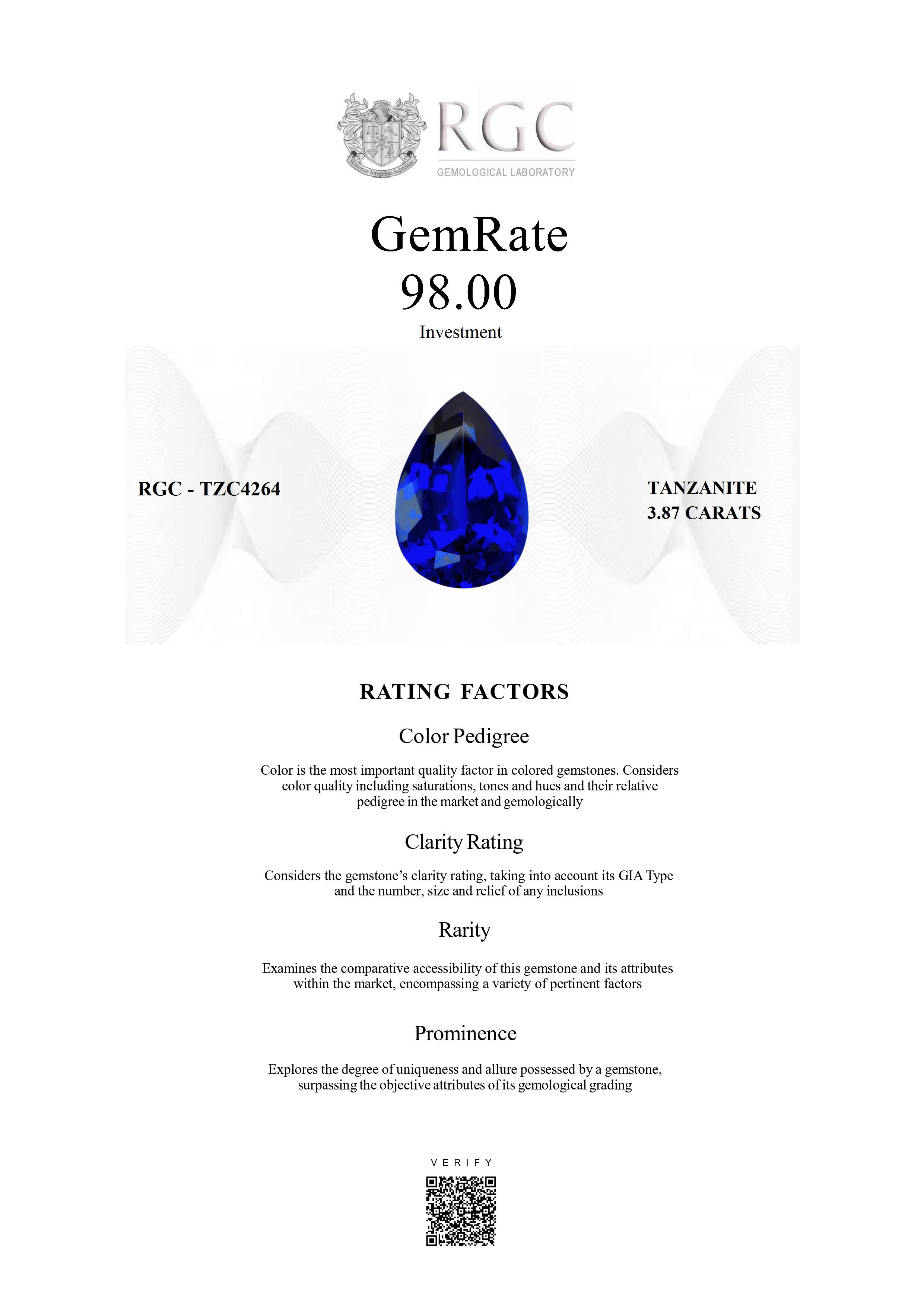 Our GemRate system was devised by our GIA Gemologists to provide a snapshot of a gemstone’s pedigree. This report is shipped with the gemstone.