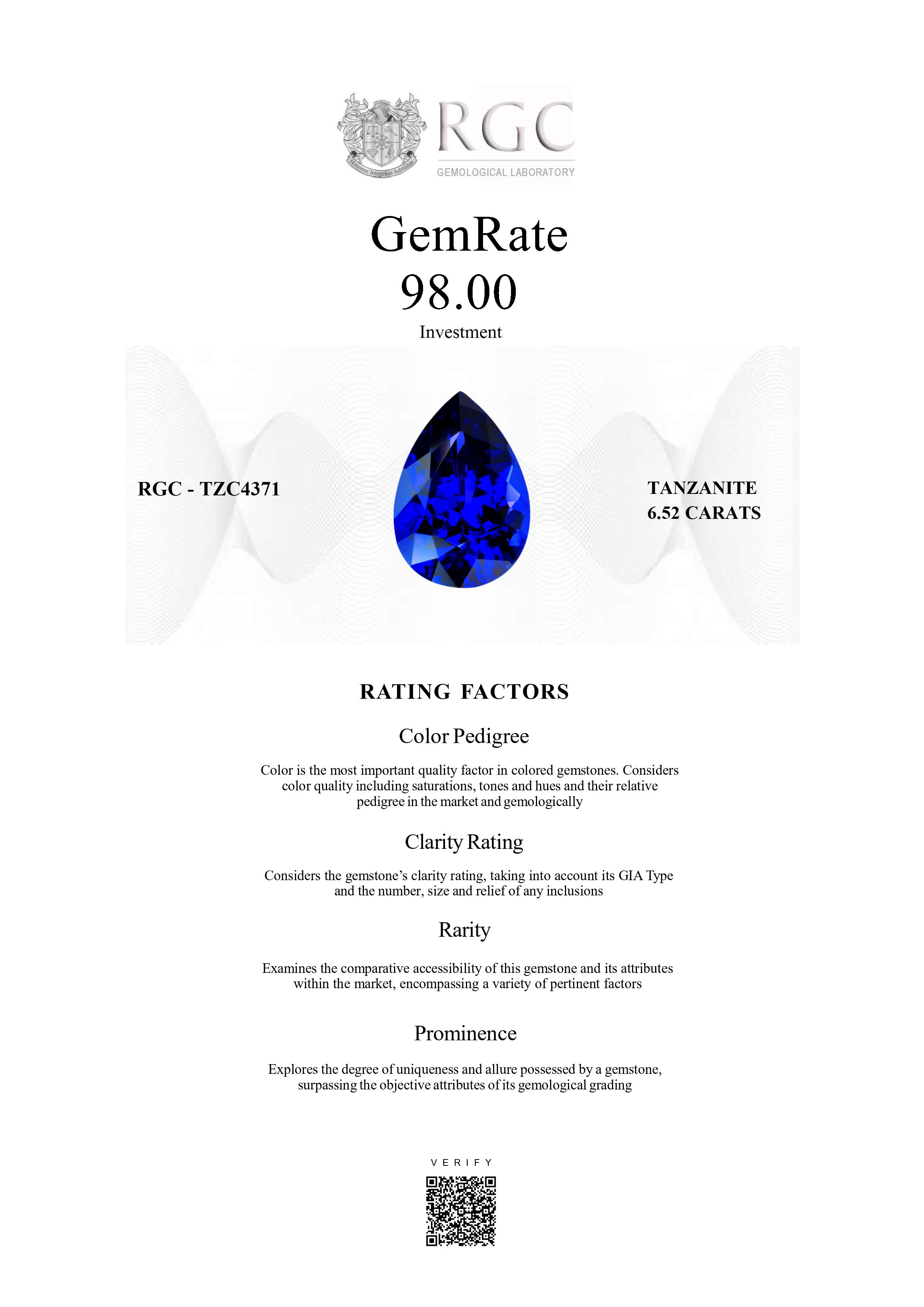 Experienced gemologists forensically examine each gemstone and apply ratings across all factors with different weightings to come up with a single number and classification thereby providing comparability by reducing the complexity inherent to colored gemstones.