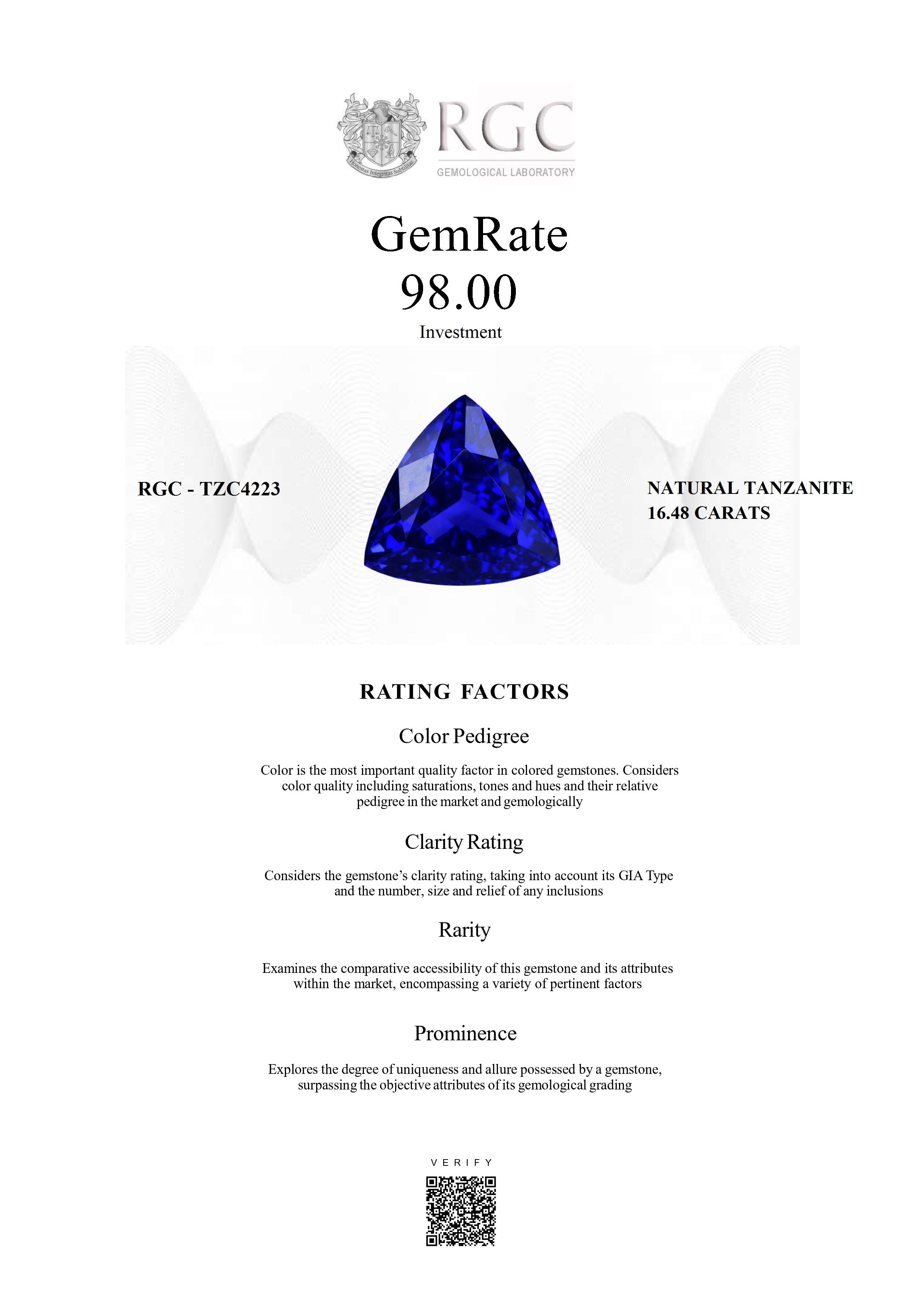 The RGC GemRate is a revolutionary system that addresses the importance and difficulty of comparing different colored gemstones with their peers in the marketplace. It assesses a wide variety of factors that exist in the marketplace and gemologically to classify gems in their genre using a standardized rating system. These factors are myriad but include quantifiable factors like color grade, clarity and cut, rarity factors examining relative rarity and also qualitative factors such as prominence, which examines the degree to which a gemstone stands out and captivates beyond just its measurable quality traits. It's essentially the stone's ability to catch attention and distinguish itself from others.