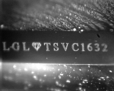 This gemstone has been laser inscribed for security purposes using the latest micro laser technology. The image above is the actual inscription on this gemstone photographed with a specialized micro camera at 45 x. the inscription corresponds with the certificate report number on the accompanying lgl certificate.