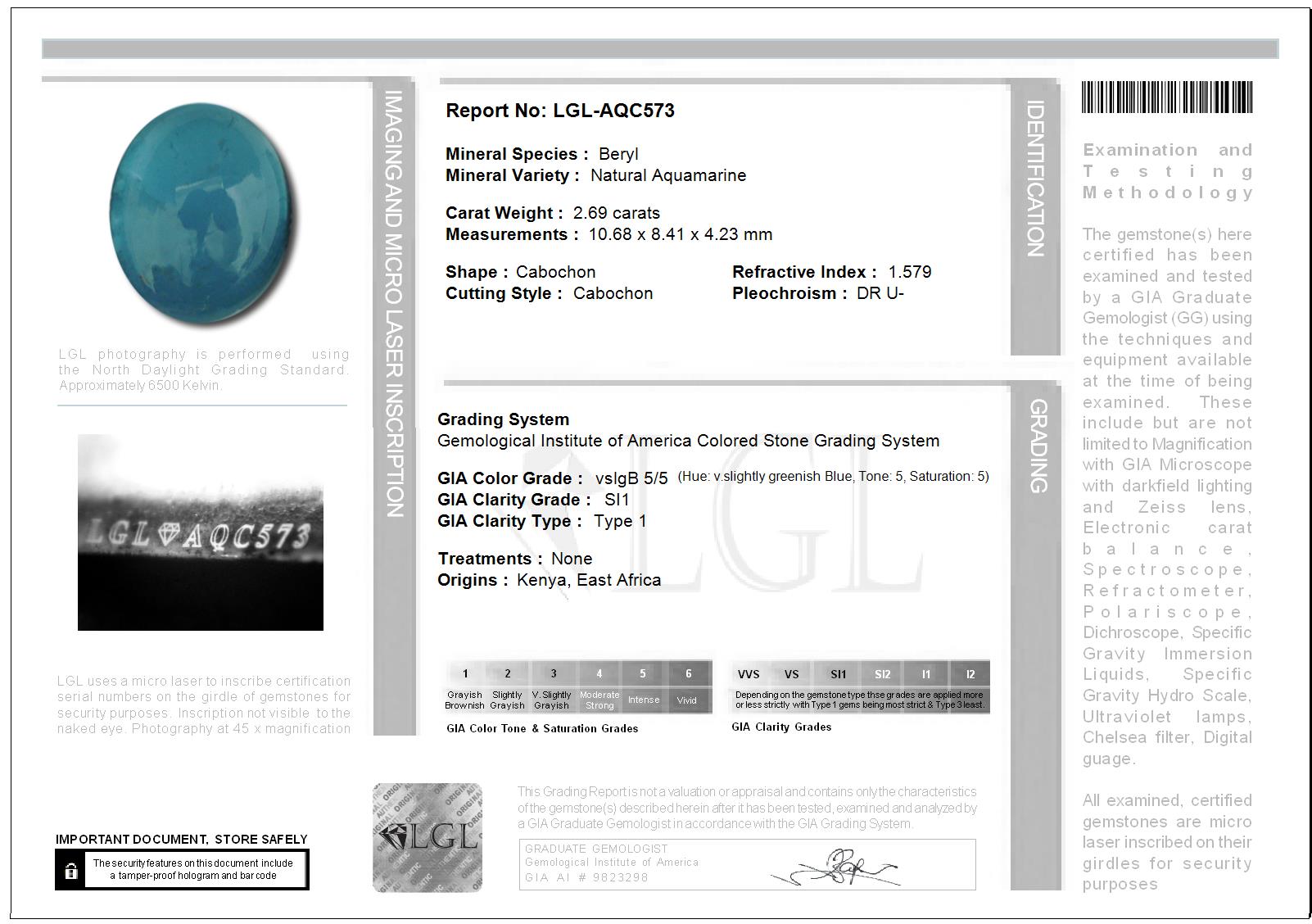 LGL employs the Gemologicaldd Institute of America Colored Stone Grading System. This is generally considered to be the most widely accepted system of grading colored stones and the most advanced.