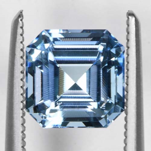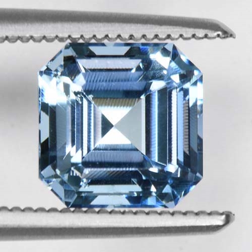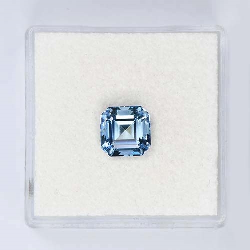This Emerald Cut Step Cut Aquamarine gemstone weighing 1.43 carats and dimensions of 6.68 x 6.67 x 4.93 mm is a stone that proudly adorns lavish blue hues, popularly referred to as 'Santa Maria Afrique' in the industry. This particular shade of blue twinkles with vitality and vivacity, creating an enthralling spectacle for the onlooker. The presence of the gemstone is sure to draw attention owing to its captivating charm and high color intensity. It's indeed a unique find to discover an Aquamarine of this pigment concentration in this compact yet substantial dimensions, making it absolutely enticing. The indulgent color saturation and striking aesthetic of this Aquamarine make it a splendid piece, worthy of being a key attraction in any gemstone assortment.