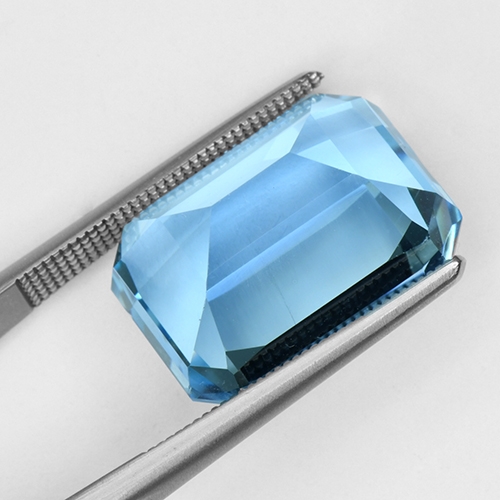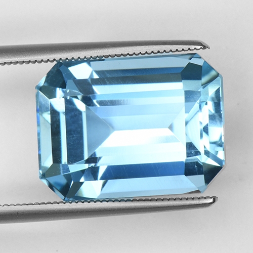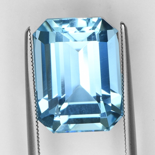 Emerald Cuts can really glow courtesy of their clean lines. This one is no exception - it exudes a wonderful luster and the graceful sleek facets on the pavilion glow through the table. This stone boasts a fine sky blue hue and flawless clarity. Very pretty.