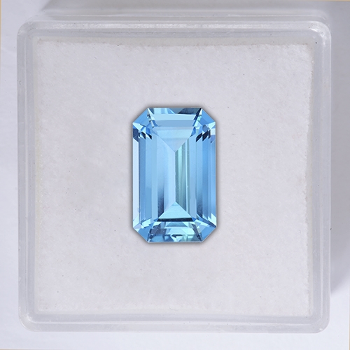 Once mined, gemologists from The Rare Gemstone Company negotiated to purchase the finest crystals of which this piece was one. It was then taken to our cutting offices and carefully cut to international standards. Because these gems are highly dichroic (meaning that they have different colors on different axes of the crystal), they have to be carefully cut to get the best color. The aquamarines from this deposit are deep blue on one axis, and light green on the other. If the stone is cut with the green axis facing up, then the blue will be far less prominent, resulting in an inferior stone. Hence the cutter had to be very careful to cut on the correct axis to maximize the color. Often this axis is the smaller axis resulting in a smaller stone than would have been achieved cutting on the greener axis and this was the case with this stone. The result was this spectacular, rare Aquamarine.