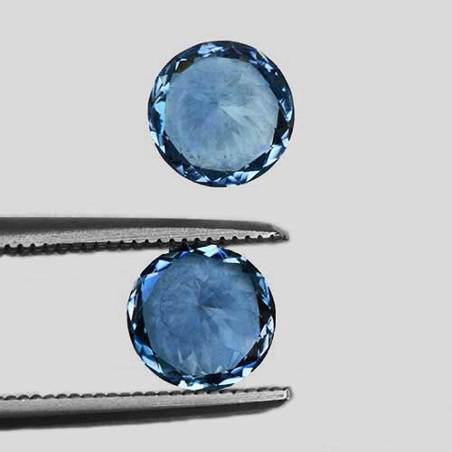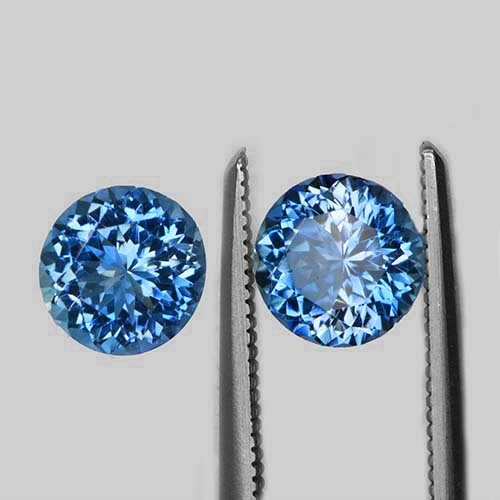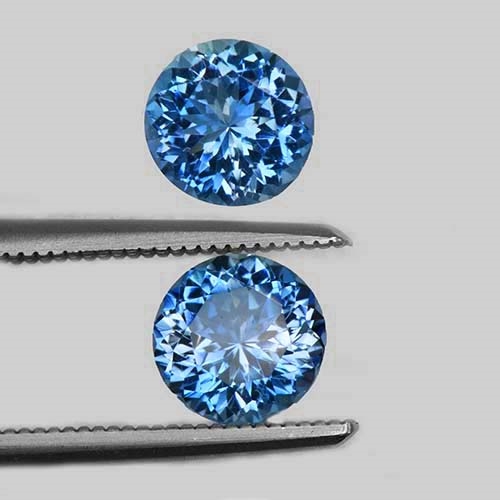 This exceptional matched pair of round brilliant aquamarine stones exhibit a truly remarkable color, and are known as "Santa Maria Afrique" in the trade, characterized by a rare intensity and vivid blue hue that is simply breathtaking. Notably, this pair has been preserved in its natural state, untouched by heat treatment or enhancement, and features flawless clarity. The exceptional cut of these aquamarines ensures optimal brilliance and fire, showcasing their beauty to fullest effect. These two stones are truly rare and exquisite, making them a prized possession for any serious collector or connoisseur of fine gemstones. Their unenhanced natural color and superb cut make them an outstanding addition to any jewelry collection or investment portfolio.