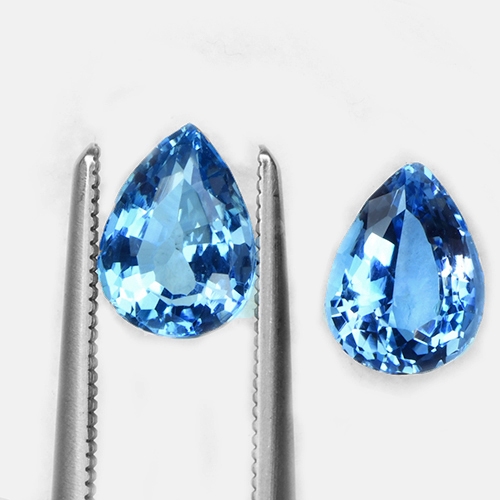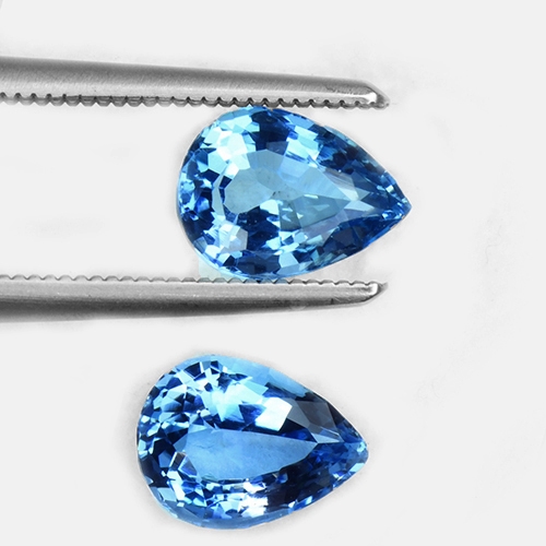 This pair of Pear shape Aquamarines is a rarity. Their exceptional color saturation, known as Santa Maria Afrique, is seldom found in this size and grade. With flawless clarity, these gemstones exude a captivating brilliance, making them a truly extraordinary and sought-after addition to any jewelry collection.