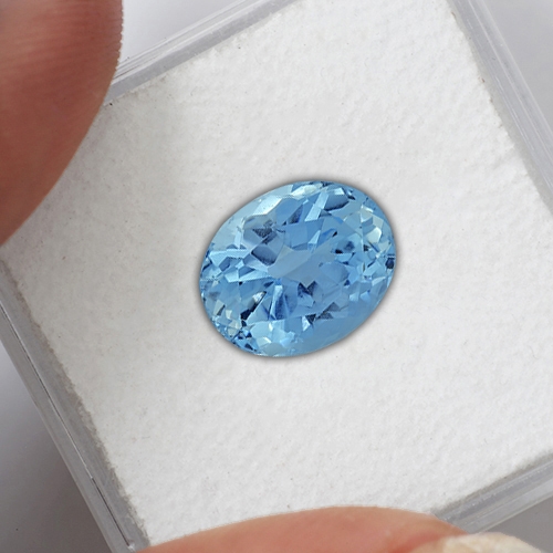 Once mined, gemologists from The Rare Gemstone Company negotiated to purchase the finest crystals of which this piece was one. It was then taken to our cutting offices and carefully cut to international standards. Because these gems are highly dichroic (meaning that they have different colors on different axes of the crystal), they have to be carefully cut to get the best color. The aquamarines from this deposit are deep blue on one axis, and light green on the other. If the stone is cut with the green axis facing up, then the blue will be far less prominent, resulting in an inferior stone. Hence the cutter had to be very careful to cut on the correct axis to maximize the color. Often this axis is the smaller axis resulting in a smaller stone than would have been achieved cutting on the greener axis and this was the case with this stone. The result was this spectacular, rare Aquamarine.
