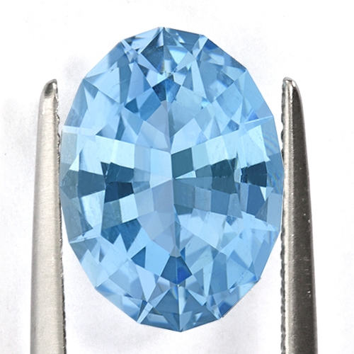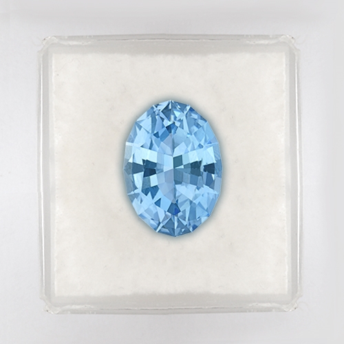 Once mined, gemologists from The Rare Gemstone Company negotiated to purchase the finest crystals of which this piece was one. It was then taken to our cutting offices and carefully cut to international standards. Because these gems are highly dichroic (meaning that they have different colors on different axes of the crystal), they have to be carefully cut to get the best color. The aquamarines from this deposit are deep blue on one axis, and light green on the other. If the stone is cut with the green axis facing up, then the blue will be far less prominent, resulting in an inferior stone. Hence the cutter had to be very careful to cut on the correct axis to maximize the color. Often this axis is the smaller axis resulting in a smaller stone than would have been achieved cutting on the greener axis and this was the case with this stone. The result was this spectacular, rare Aquamarine.