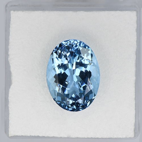 This Aquamarine oval cut displays flawless clarity and enchants with its stunning sky blue hues. With high levels of brilliance, it illuminates any space with a captivating radiance. The gem's mesmerizing sky blue color evokes a sense of tranquility and serenity, reminiscent of a clear summer sky.