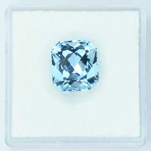 This Aquamarine is a true marvel, featuring an exceptional Radiant Cut that maximizes its brilliance. Its sky blue hue is nothing short of spectacular, reminiscent of a pristine summer sky. When the light dances upon its facets, an explosion of radiance ensues, captivating all who behold it. This gem embodies both elegance and vibrancy - light really enjoys itself within it. Flawless, beautifully cut. Superb