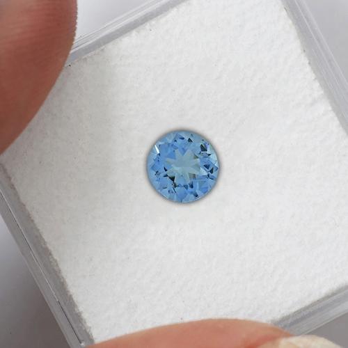 Fine color, clarity and cutting. This lovely 0.98 carat Aquamarine punches above its weight when it comes to beauty.