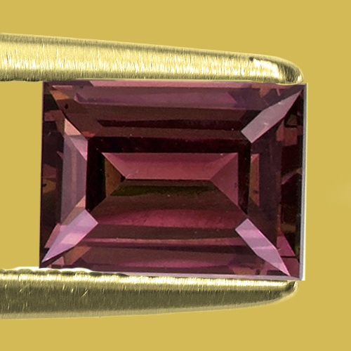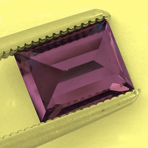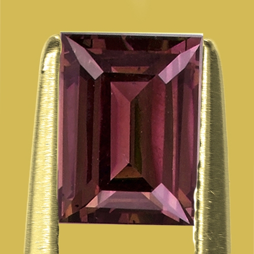 A true Alexandrite mimic - complete change from bluish-green to raspberry red. Until recently gemologists didn't believe a singly refractive gem like garnet could display a complete change in the manner of Alexandrite which is doubly refractive. Recent discoveries in Kenya and Tanzania dispelled this however, producing some amazing stones. This gorgeous, rare 1.09 carat Baguette is a case in point. Intense green in daylight/white light and transforming into an explosive raspberry red under incandescent light. This article goes into more detail on this gem type : https://www.theraregemstonecompany.com/gemology-articles/color-change-garnet-from-kenya