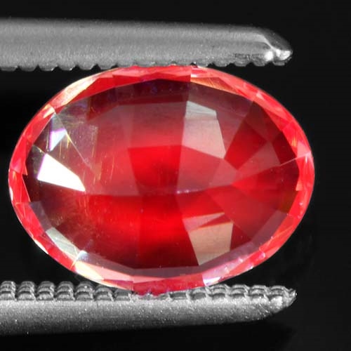 An exceptional oval brilliant Dragon Garnet boasting impeccable clarity which enhances its brilliance. The Garnet exhibits a magnificent blend of pinkish orange hues that imbue it with a charm that is hard to ignore. One of its most captivating features is the radiant fluorescence it exhibits under UV light, leading to an explosive display of neon red. It is a coveted piece perfect for any exclusive collection or a sophisticated piece of jewelry. This garnet is indeed a testament to the inherent beauty that nature offers in unique and rare forms.
