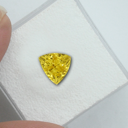 Explosive. A very sparkly stone as to be expected from a Trillion in a high refractive gem like Yellow Sapphire. Untreated and natural. Very fine.