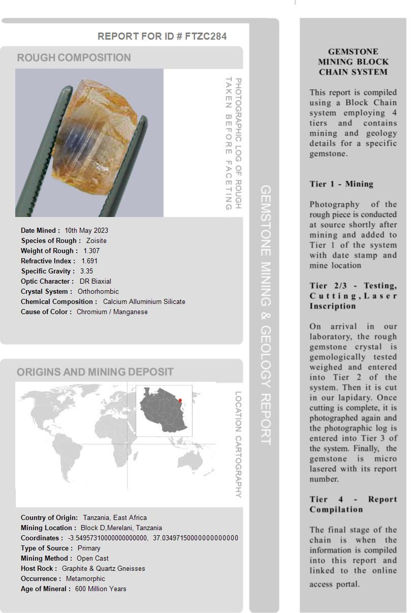 Several unique reports are shipped with this gemstone