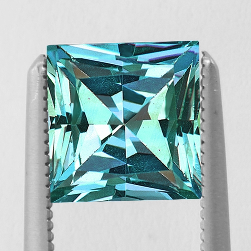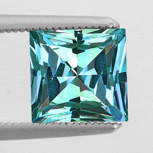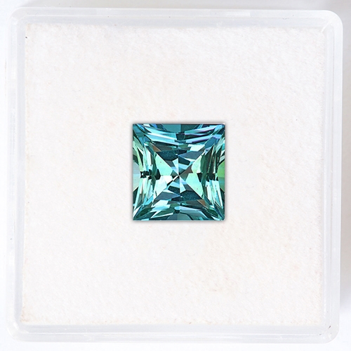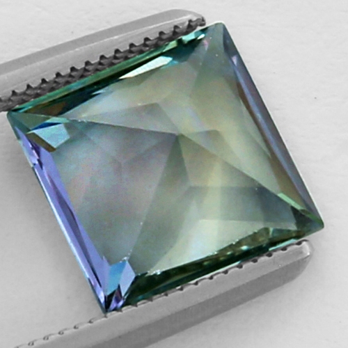 Rare and beautiful. This stunning Princess Cut Green Tanzanite sparkles with life. superb cutting and wonderful color. Flawless.
