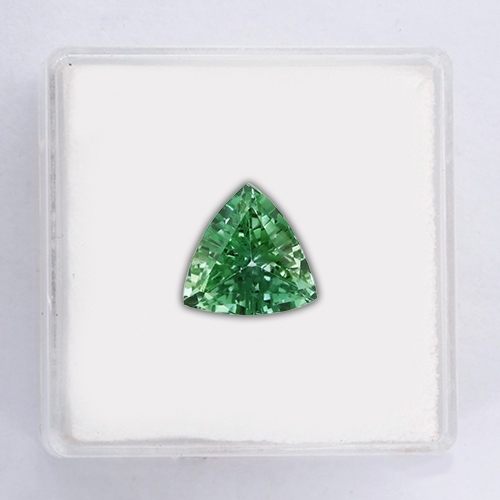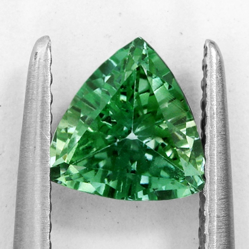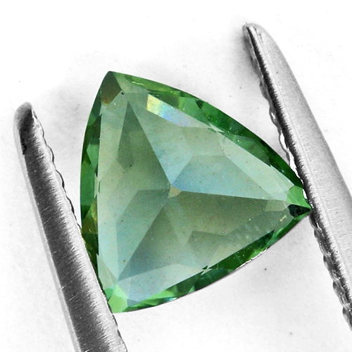 An exceptional Green Tanzanite. Very rare, very beautiful. It boasts high levels of brilliance and sparkle, flawless clarity and top pedigree. Robust trichroic reaction in the dichroscope as to be expected from a Tanzanite, displaying green, violet and blue trichroic colors. Outstanding.