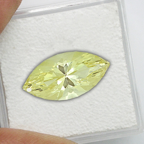 One of the finest Heliodors we have seen. Also known as Golden Beryl and the same family as Aquamarine, Heliodor is a wonderful gemstone. This particular stone isso eye catching because it literally explodes with brilliance.The cutting is superb. The piece is flawless and the luster is gorgeous.