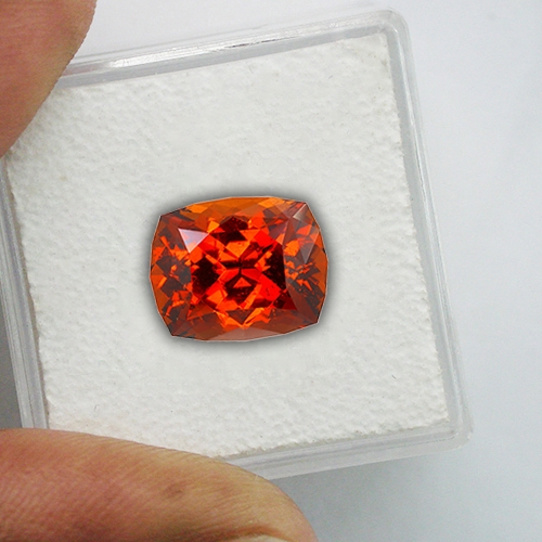 Top grade Imperial Malaia Garnet. This superb piece came to us as an alluvial pebble panned out of the renowned Umba River in Tanzania. Whereas these sorts of alluvial pebbles were quite often found in the 19980's and 1990's they have become very rare since the millenium. We cut a sparkling, intense reddish orange stone with hints of pink from it, just like the old days. Stunning.