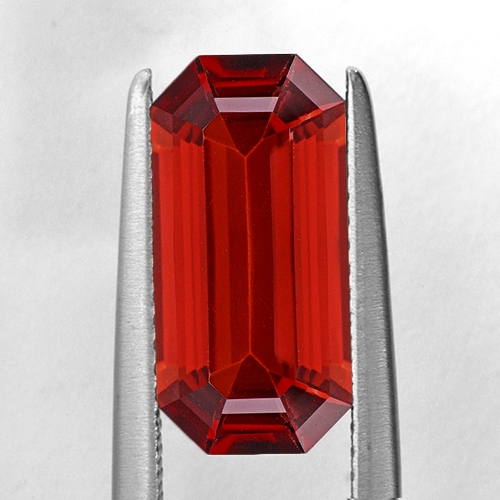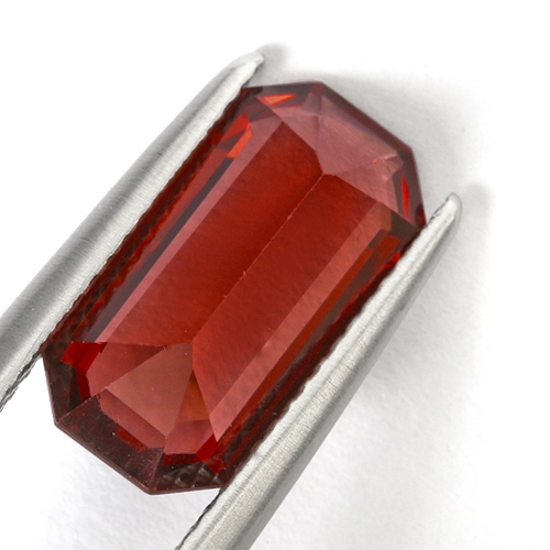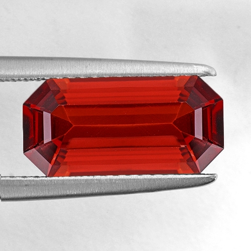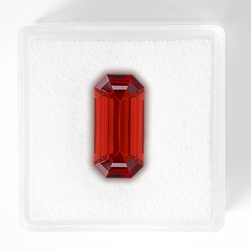A stunning long Emerald cut, very fine Malaia Garnet. Perfect for a pendant or unique ring. This stone has mouthwatering color - vivid orange with a robust red modifier. Flawless.