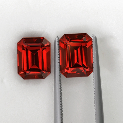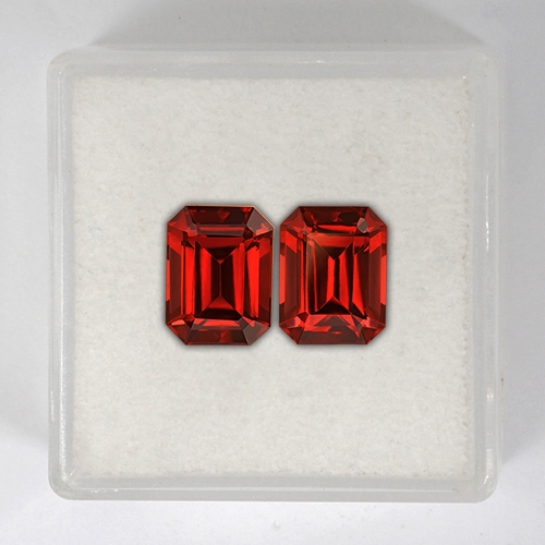Stunning. This flawless matched pair of fine Malaias really glow. A wonderful "burnt orange" color - stunning redish orange hues emanate from both stones. Superb