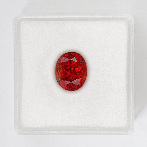 This lovely 2.76 carat Malaia Garnet Oval boasts top color - a bright, vivid orange with a sparkling red modifier. Flawless. Very beautiful.