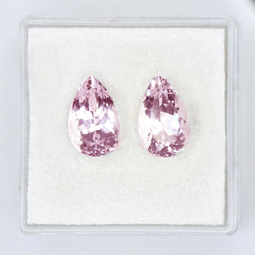 This pair of enchanting Morganite gemstones exude an aura of exuberance through their lively reflections. Displaying a total weight of 4.04 carats, these pear-shaped gems are surrounded by an intense, radiant glow that brings out their delicate peachy-pink hues in an incredibly appealing manner. The impeccable cut and clarity of these gems maximize their light-capturing abilities, making them appear more brilliant and visually appealing. The sheer elegance of these matched pair pear brilliant Morganites is sure to leave any onlooker mesmerized with their beauty. Their vibrant color, along with their substantial size, makes them truly standout pieces.