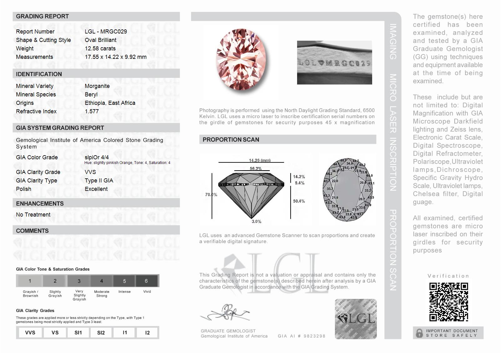 LGL employs the Gemologicaldd Institute of America Colored Stone Grading System. This is generally considered to be the most widely accepted system of grading colored stones and the most advanced.
