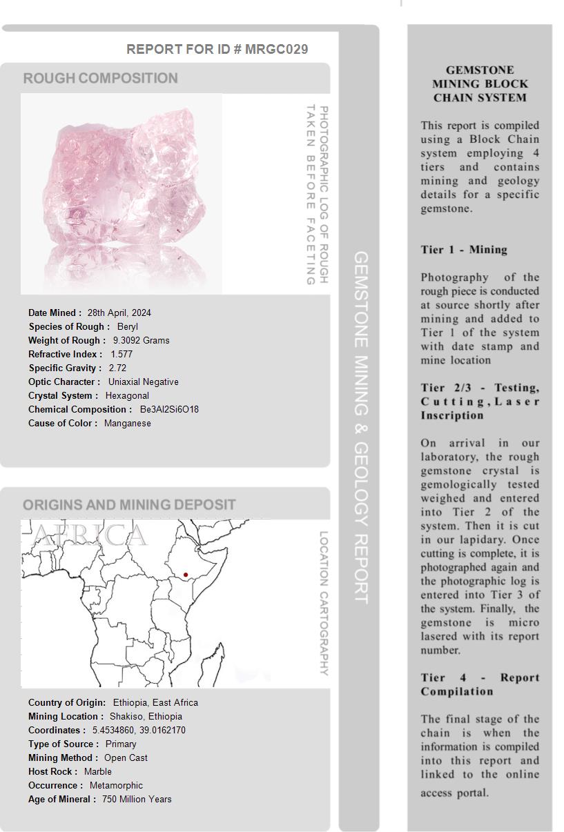 The recent discovery of Morganite occurred as miners hunted for Emerald in the Oromia district in the ancient kingdom of Ethiopia. The Morganite found was of very high quality and some larger crystals were available in the early days of mining. We purchased some of the best and cut them to a very high standard.
