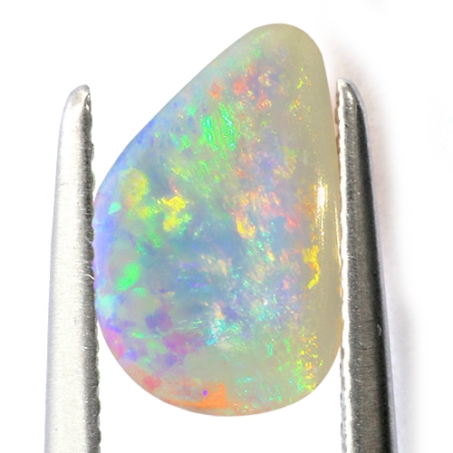 Opal is a form of silica, chemically similar to quartz, but containing water within the mineral structure. Precious opal generally contains 6-10% watter and consists of small silica spheres arranged in a regular pattern.