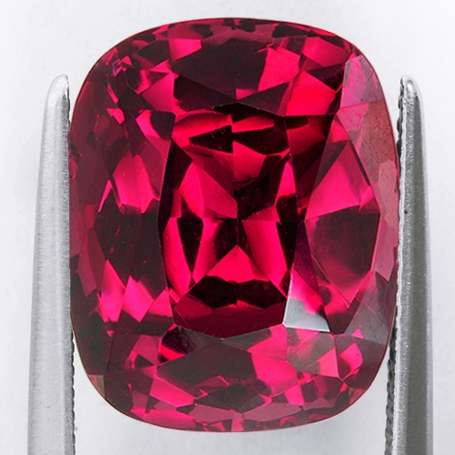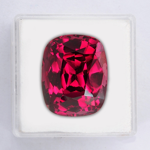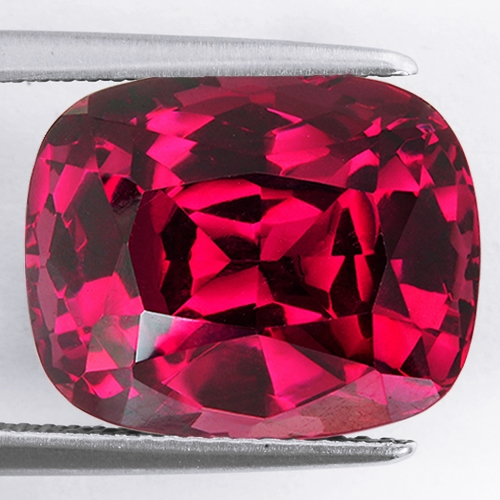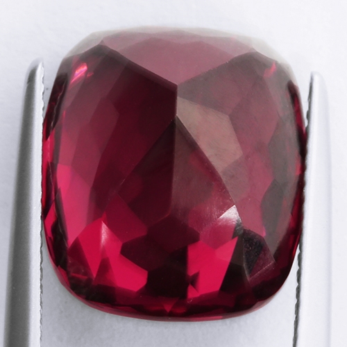Gorgeous Rhodolite hailing from the renowned Umba Valley in Tanzania. This incredible 16.10 carat sizeable cushion boasts the most amazing deep, vivid red hue with touches of purple. It is flawless and beautifully cut. A true treasure.