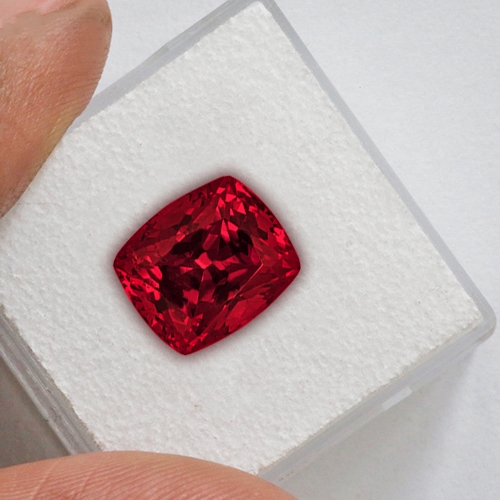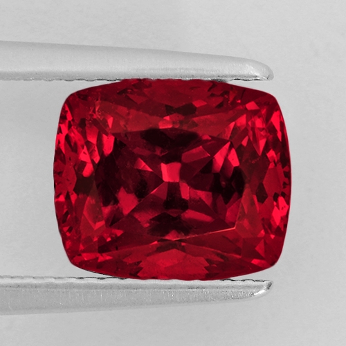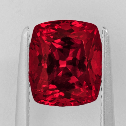 Top grade "raspberry" red hues grace this wonderful Rhodolite cushion cut. Very intense color saturation and the hue is extremely vivid. Truly beautiful.