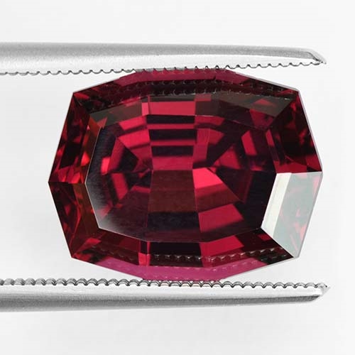 This 8.17-carat Rhodolite Garnet is beautiful. It is an incredibly rich, velvety red hue which is very beautiful and reminiscent of Ruby. Flawless clarity and great cutting complete the package.