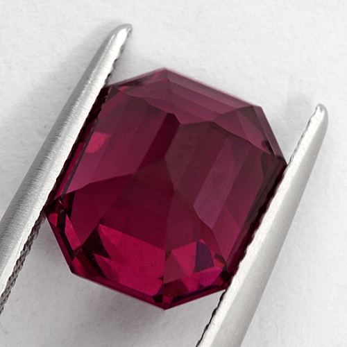 Absolutely stunning. This stone boasts exceptional color - a very vivid purple-Red. Its gorgeous hues are driven from its depths by great cutting and light scintilates off the clean back facets to mesmerizing effect. Flawless. Beautiful.