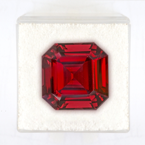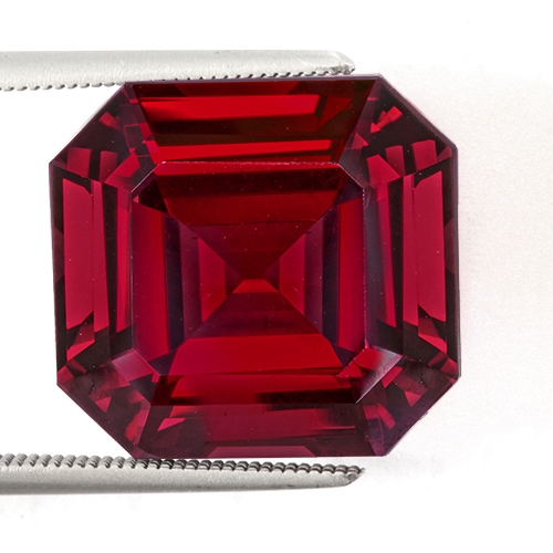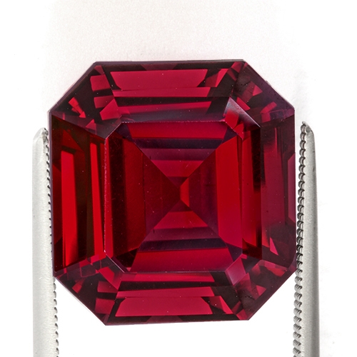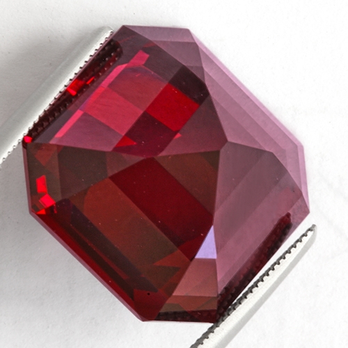A rare piece. A whopping 20.35 carat emerald cut boasting a very intense red hue with a slight purple modifier. It is flawless and well cut. Glowing with inner fire, it exudes a ruby red for its depths. Gorgeous, rare and exciting.