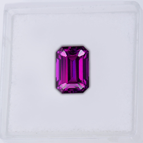 Although technically classed as Rhodolites, these special stones have some unusual and unique properties. They exhibit a rich grape hue under cool daylight but under incandescent they display an intense cranberry red with flashes of magenta. Lab analysis of the absorption spectra shows the main absorption bands dominating the green-yellow regions of the visible spectrum. Additionally, two strong blue and red transmission regions combine to produce an eye-visible purple color, and also account for the strong color change under different light sources.
