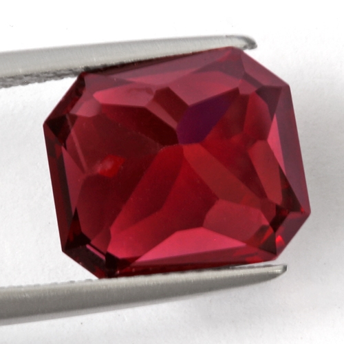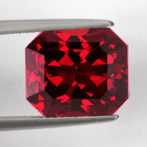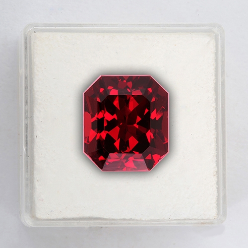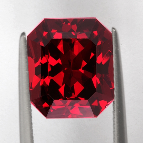 A commanding Rhodolite Garnet. It boasts a robust, intense deep red hue known as "raspberry" in the trade. Excellent cutting and top clarity. Would make a spectacular ring. Superb