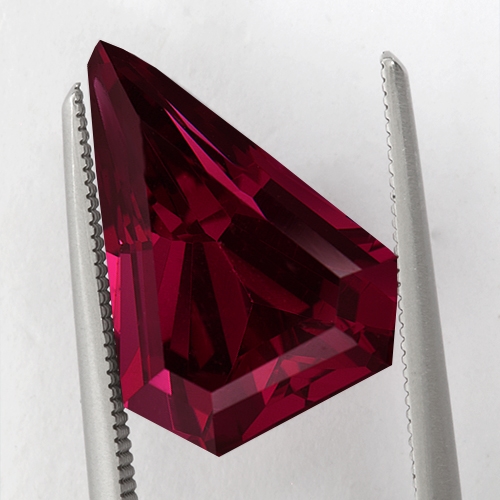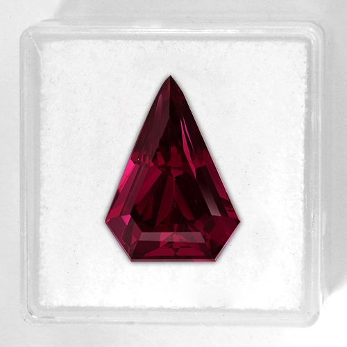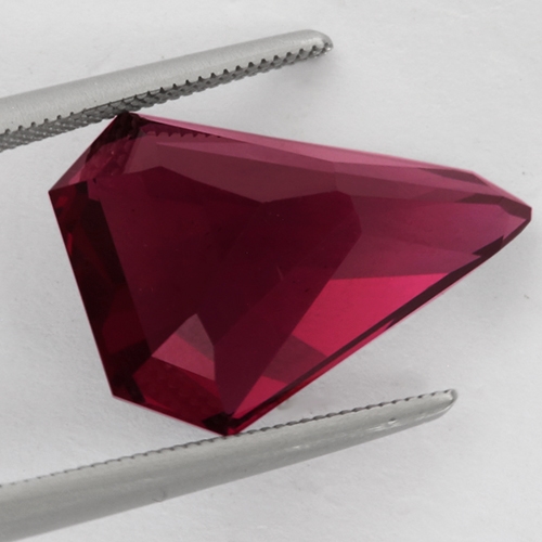Fascinating and unique - a perfect stone for a one-of-a-kind piece of jewelry. Wonderful top color raspberry red and flawless!
