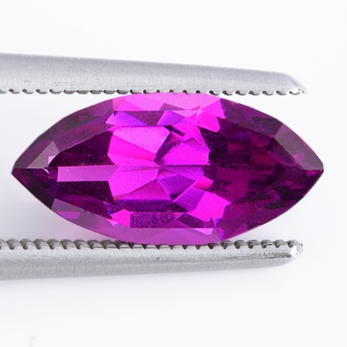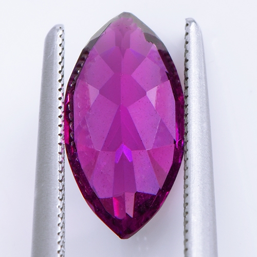 Although technically classed as Rhodolites, these special stones have some unusual and unique properties. They exhibit a rich grape hue under cool daylight but under incandescent they display an intense cranberry red with flashes of magenta. Lab analysis of the absorption spectra shows the main absorption bands dominating the green-yellow regions of the visible spectrum. Additionally, two strong blue and red transmission regions combine to produce an eye-visible purple color, and also account for the strong color change under different light sources.