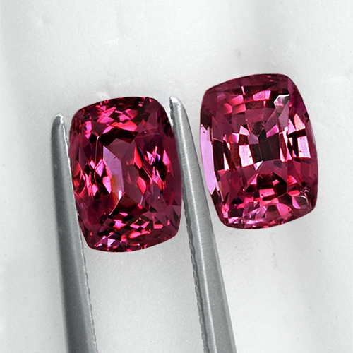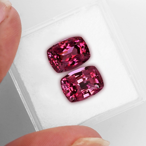 Stunning. This top grade matched pair of Umba Rhodolites are classic Umba material. High brilliance and gorgeous pinkish red hue. High clarity. Truly beautiful.