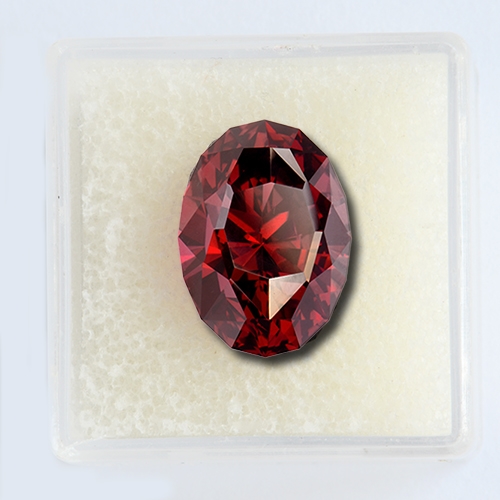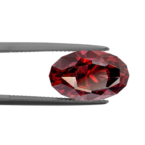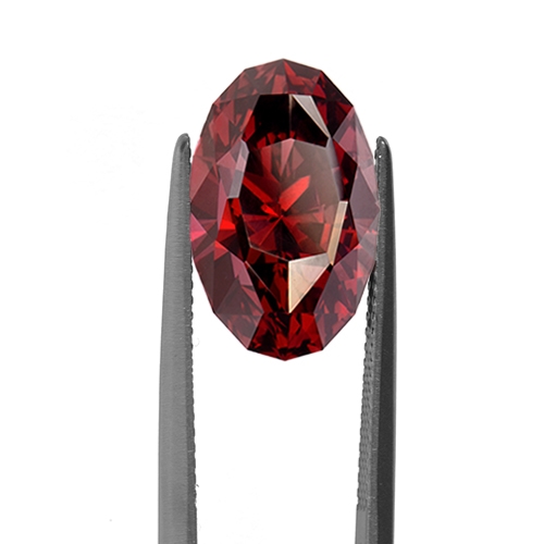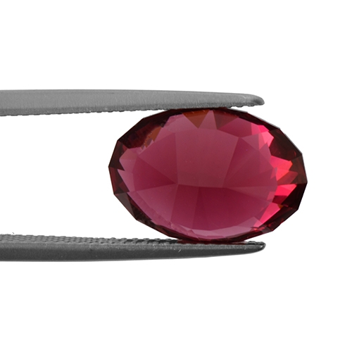 Sleek long oval with very intense red hues and just a tiny hint of purple. Flawless.
